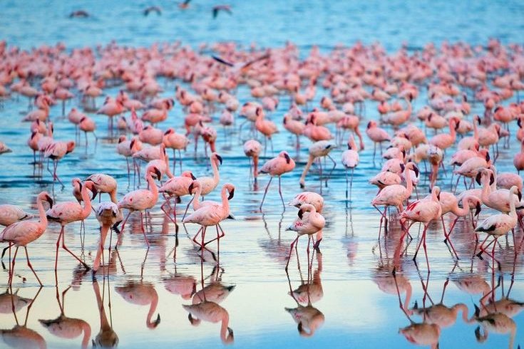 - Flamingos and pelicans along Lake Nakuru.